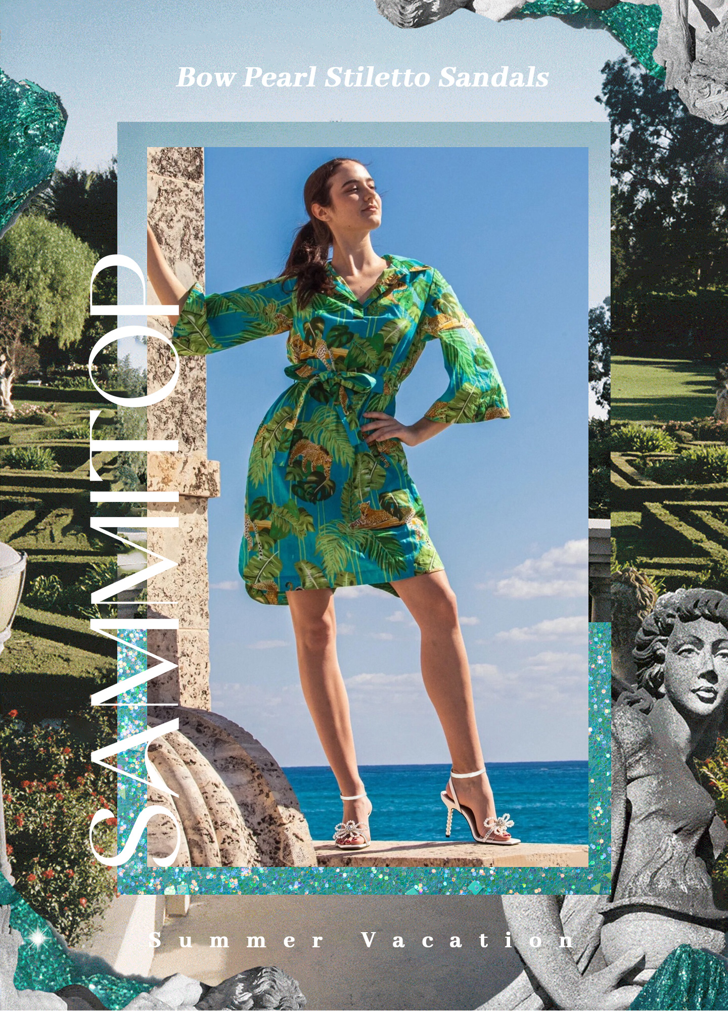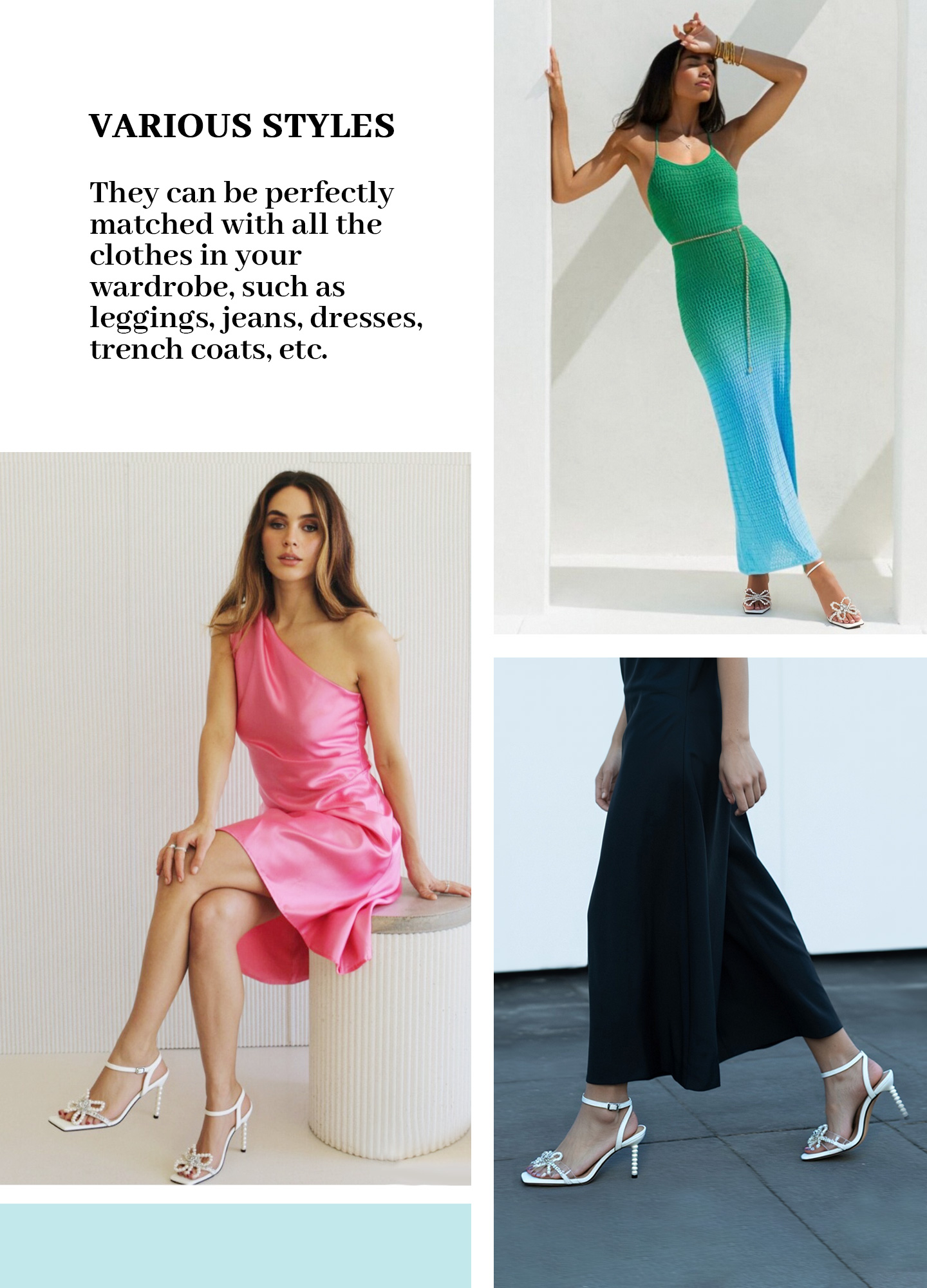 SAMMITOP Pearl Stiletto Sandals with Rhinestone Bow