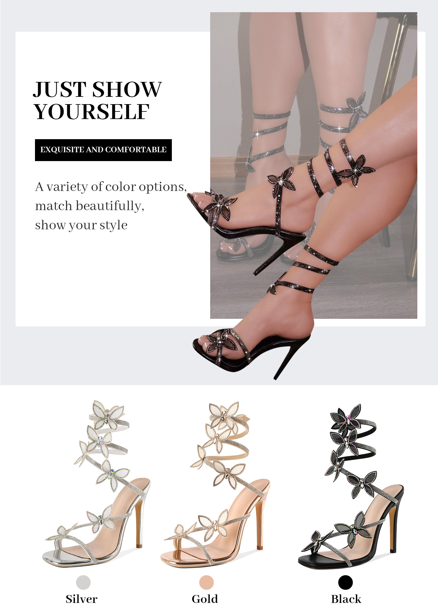 SAMMITOP Rhinestone Butterfly Wrap Around Stiletto Heels