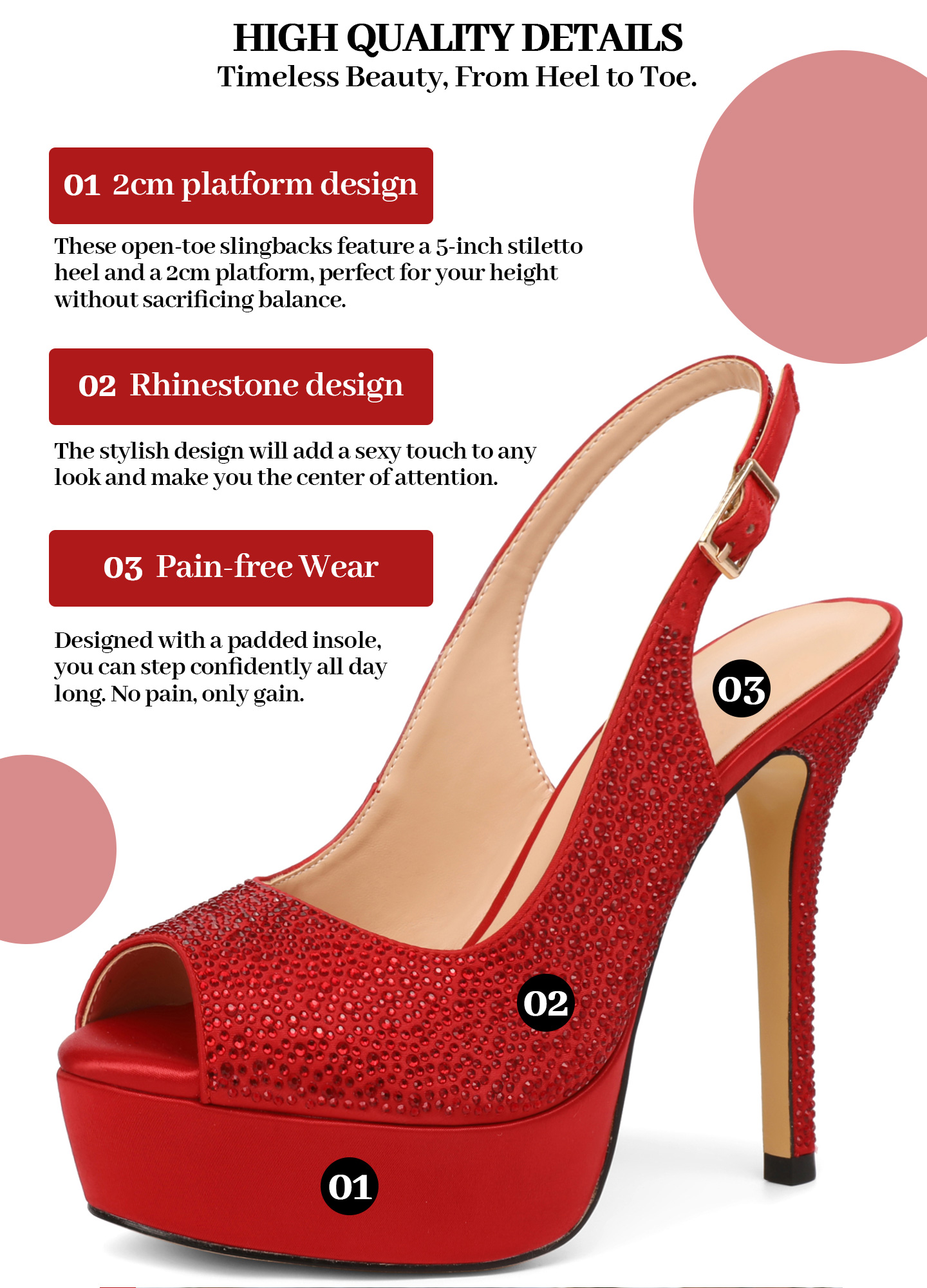 SAMMITOP Rhinestone Platform Open Toe High Heel Slingback Sandals