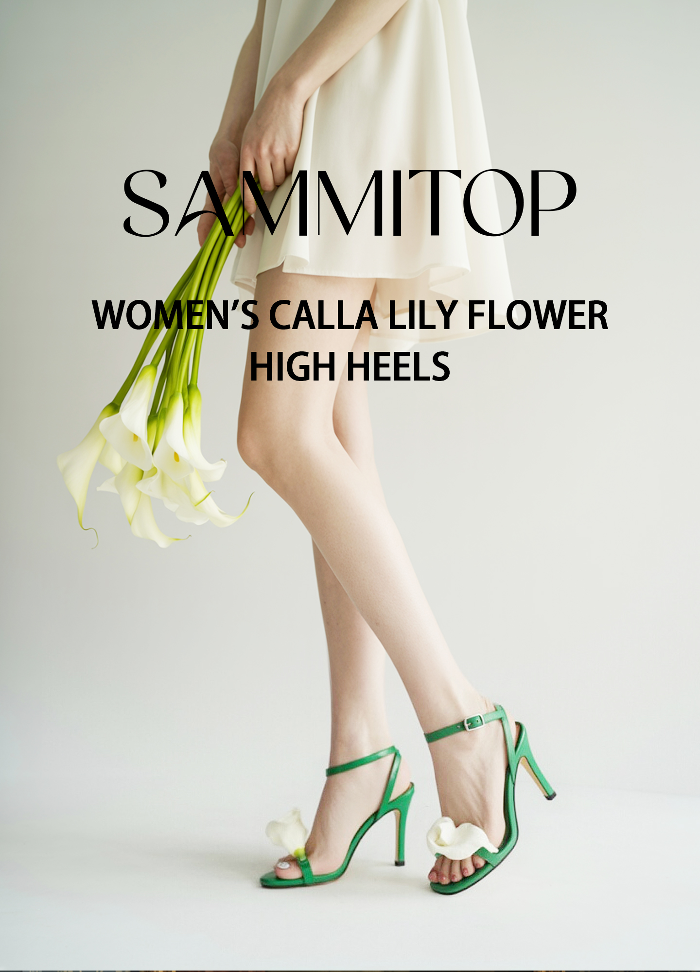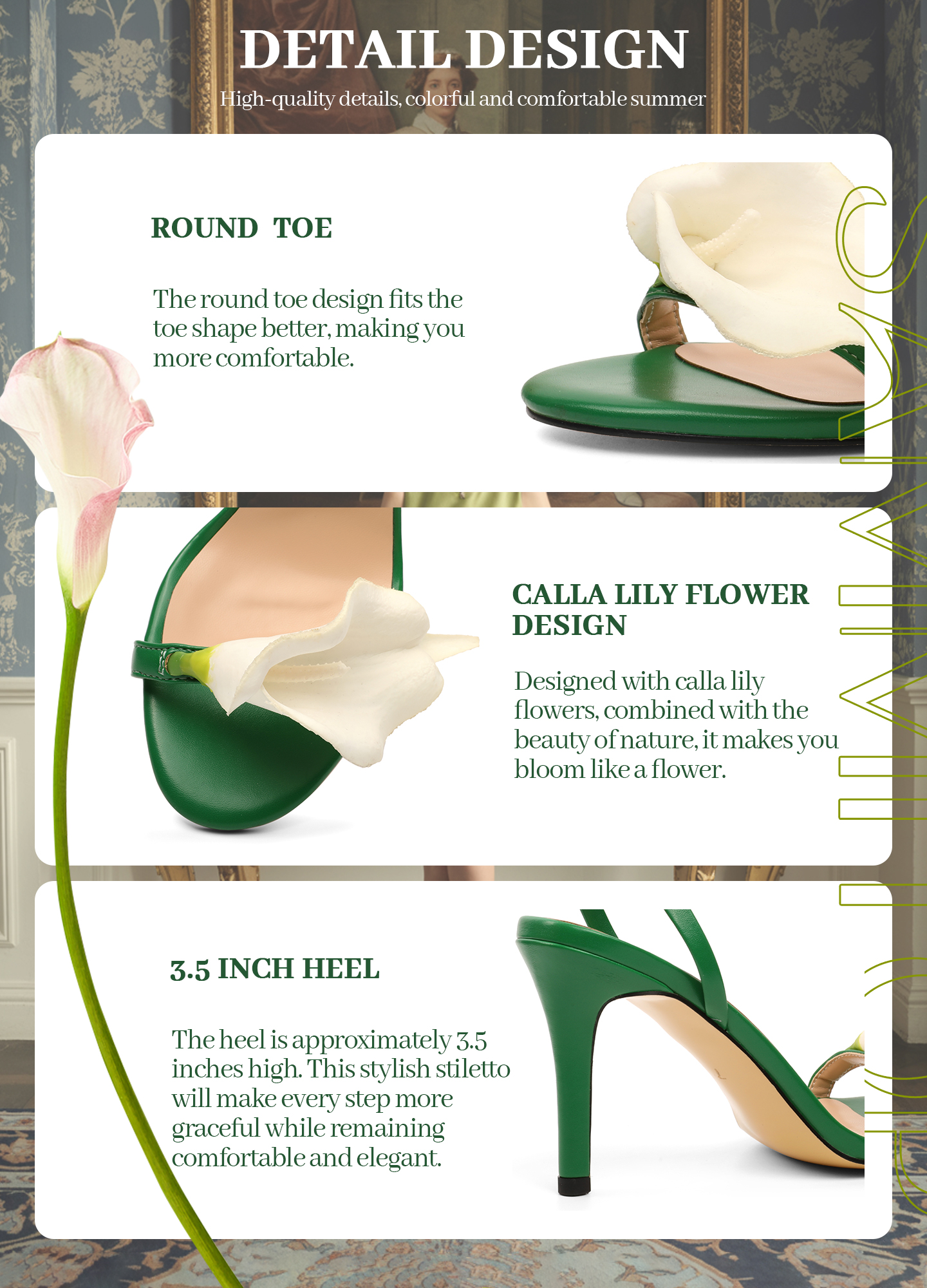 SAMMITOP Green Floral Stiletto Heels with Ankle Strap