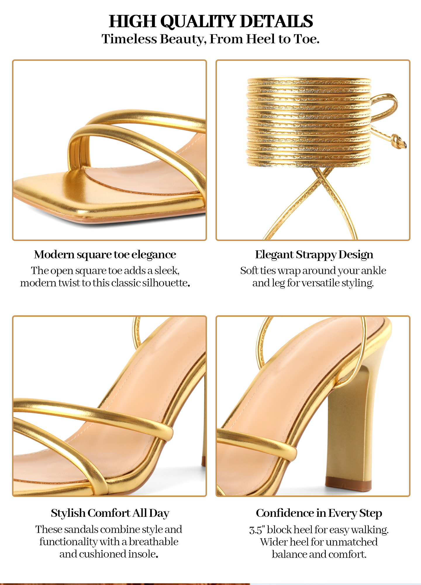 SAMMITOP Strappy Chunky Heels – 3.5" Lace-Up Sandals