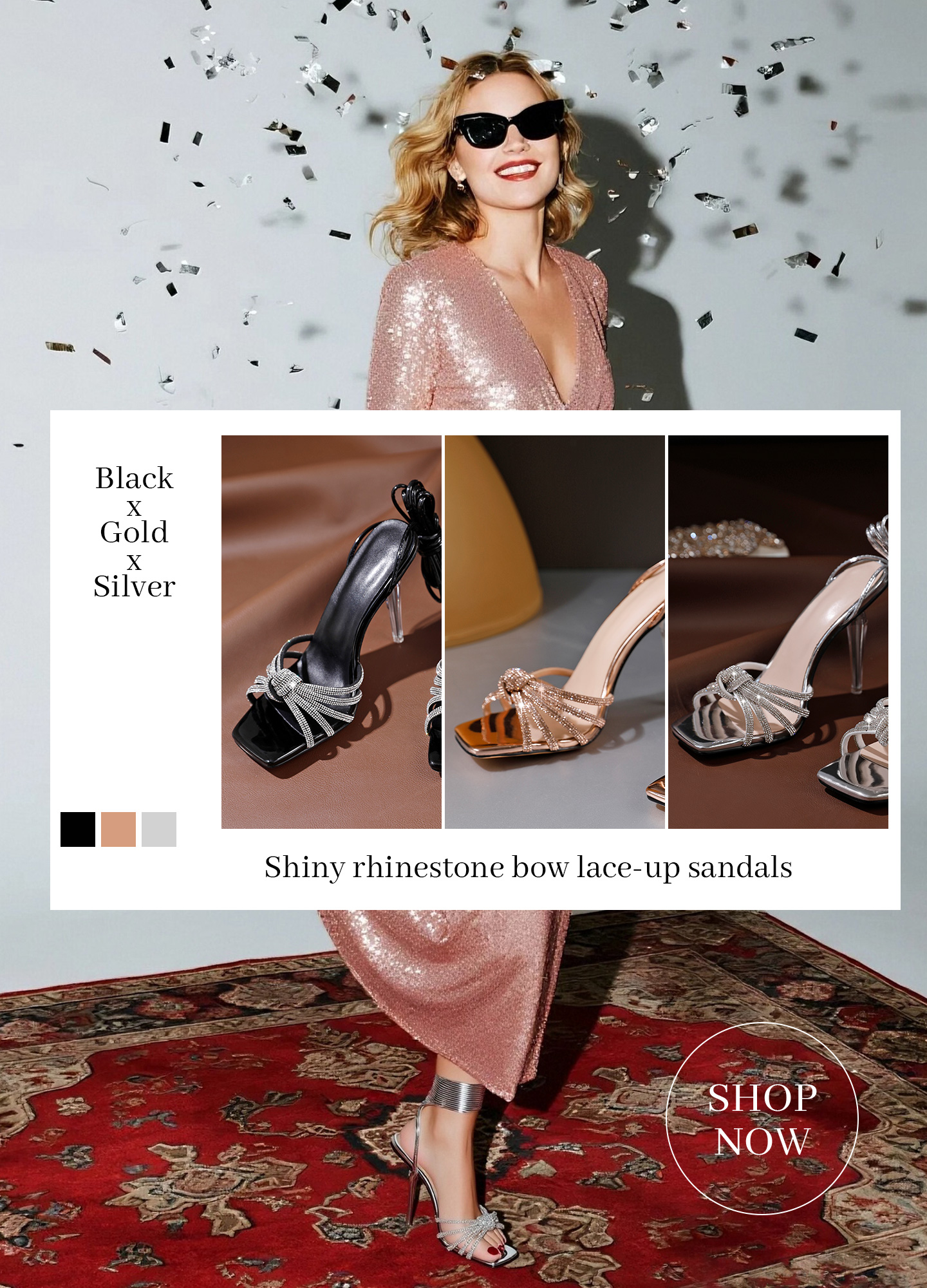 SAMMITOP Sparkly Rhinestone Bow Lace-Up Sandals