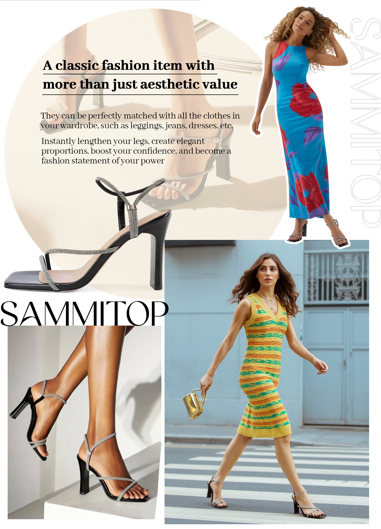 SAMMITOP Strappy Chunky Heels for Women Open Toe 3.5 Inch Sandals